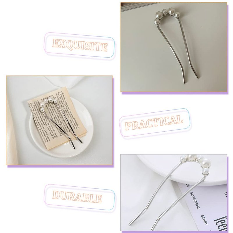 - 🌺【Set】You will receive 4pcs U-shaped hairpin sticks, 2pcs silver, 2pcs gold. The U-shaped hairpin sticks are all embellished with pearls, sufficient quantity to meet your daily needs.