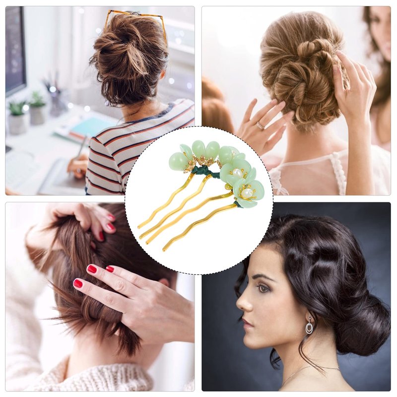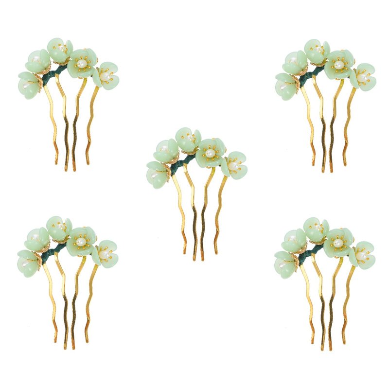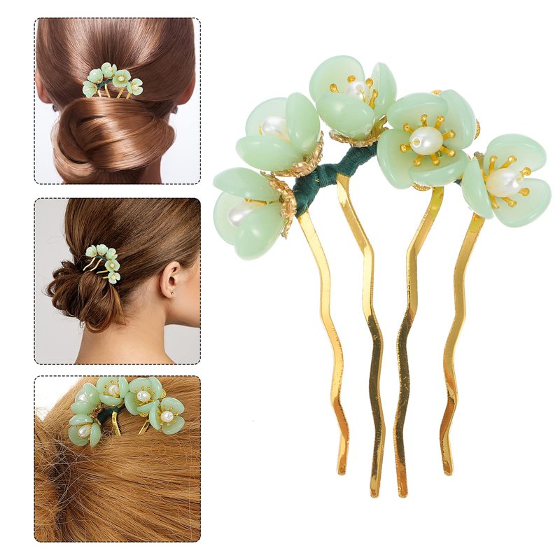 Beaupretty 5 Pieces Jade Flower Hair Pins Women Girls Hair Stick Chinese Retro Chignon Pin Hair Chopsticks Hair Styling Hair Making Accessories for Hanfu Costume(Green)