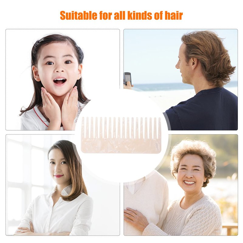 Beaupretty Wide Tooth Comb Tortoise Comb Hair Detangler No Handle Comb Acetate Pocket Hairdressing Comb for Thick Curly Wavy Wet Dry Hair White