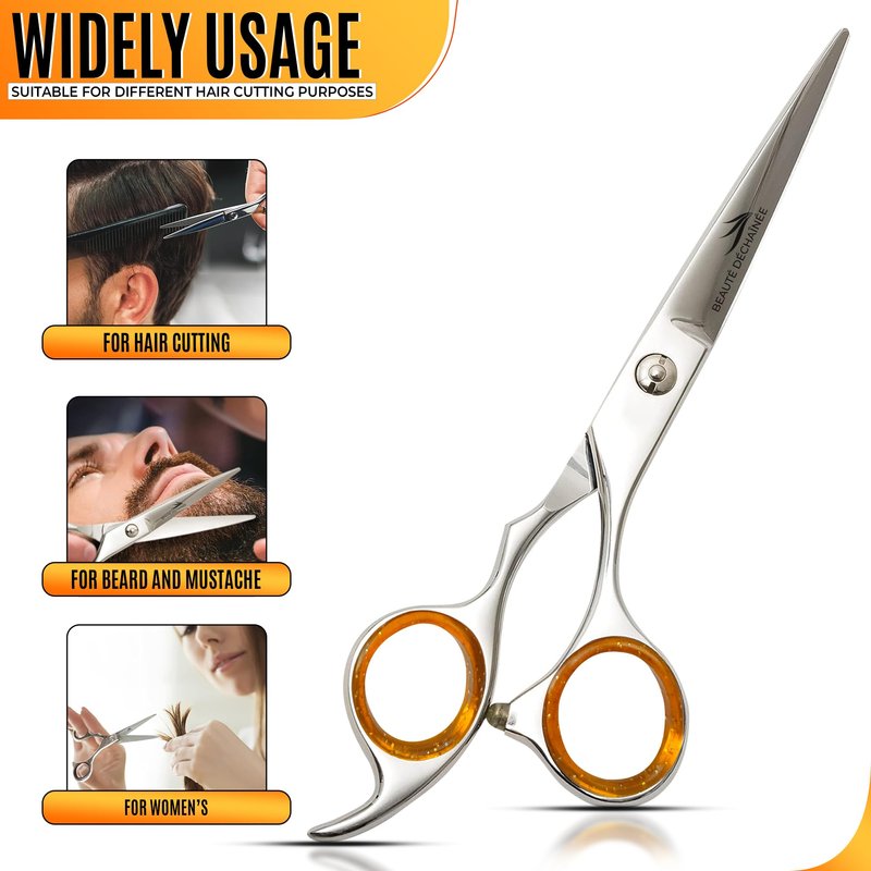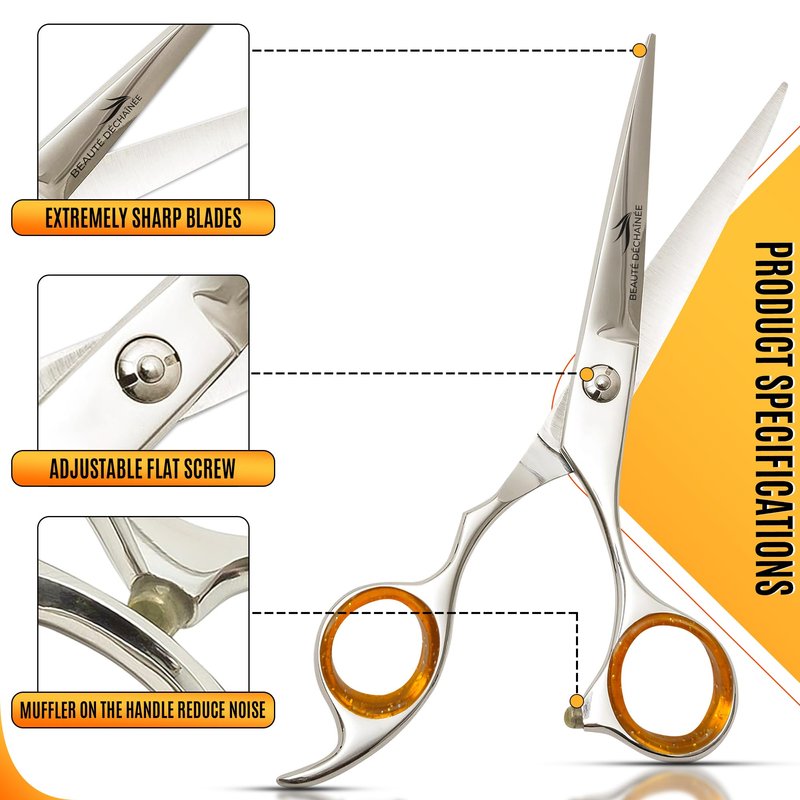 - ✂️ Premium Hair Scissors: Specially engineered for professionals, these BEAUTÉ DÉCHAÎNÉE haircutting scissors ensure unmatched precision and comfort in every cut, making them an essential tool for barbers and hairstylists.
