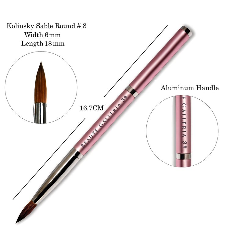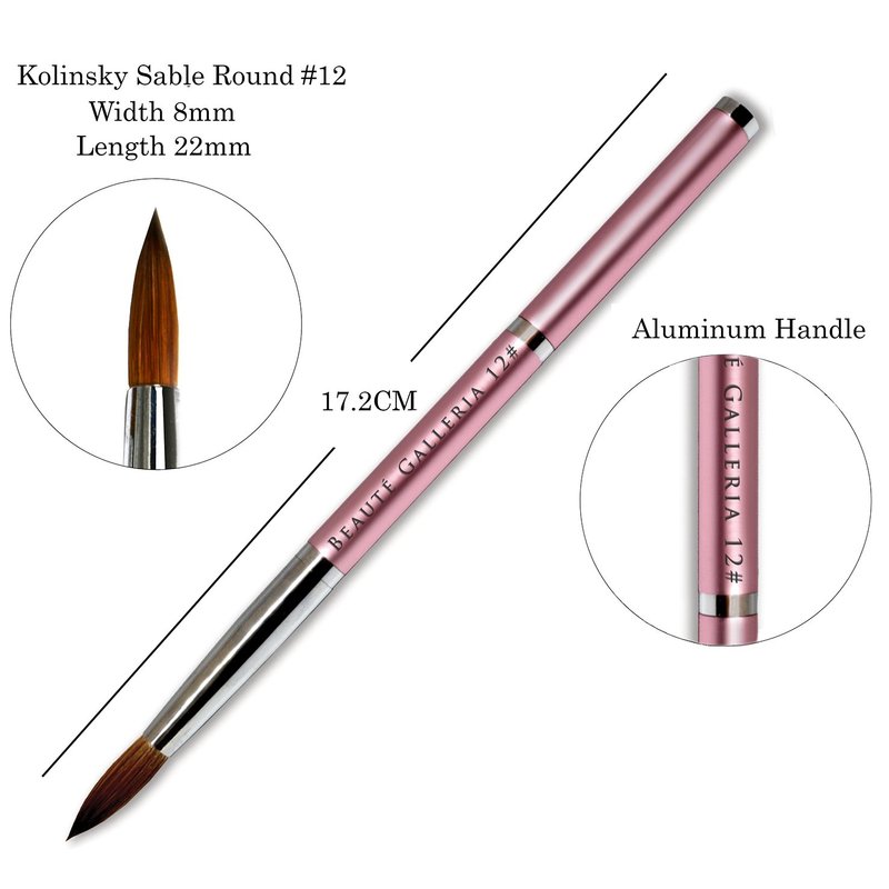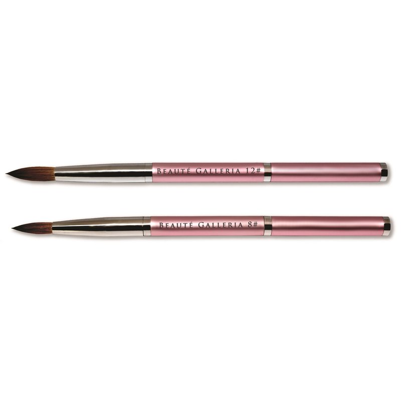 Beaute Galleria 2 Pieces Kolinsky Sable Round Acrylic Nail Art Brush Set, Manicure Detail Painting Nail Art Pen (Size 8, 12)