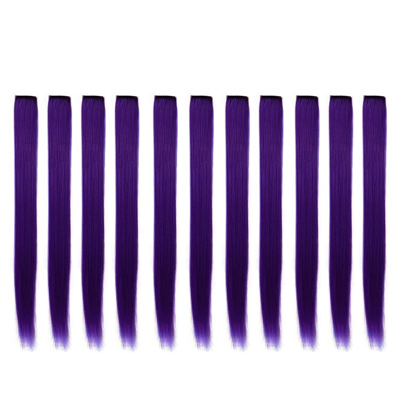 Beaute Galleria Bundle 11 Pieces Single Color 21 Inches Straight Party Highlights Clip In Synthetic Hair Extensions Cosplay Comic Con Halloween Costume (Purple)