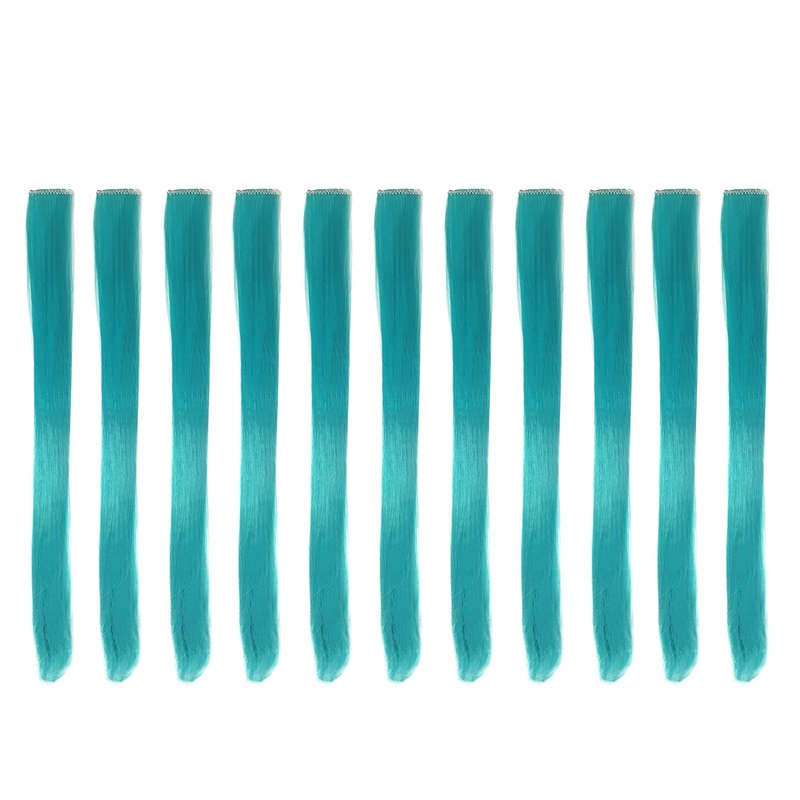 Beaute Galleria Bundle 11 Pieces Single Color 21 Inches Straight Party Highlights Clip In Synthetic Hair Extensions Cosplay Comic Con Halloween Costume (Turquoise)
