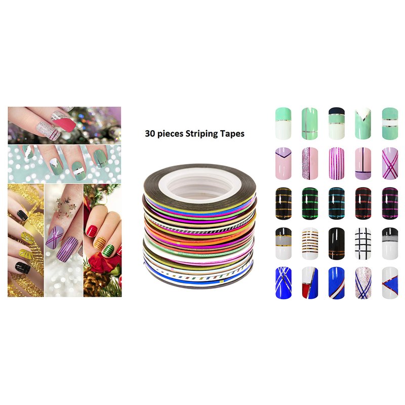 - [30PCS STRIPING TAPES] The mixed colors nail striping tapes create perfect straight line designs on nails, it also help you create 100's of different designs.
