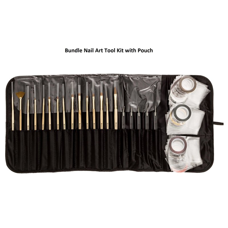 - [NAIL ART BUNDLE SET – 50PACK] Includes: 5 Dotting Pen (10 sizes), 15 Detailing Painting Brushes, 30 Striping Tapes. The bundle set comes with a lightweight, portable storage case / pouch.