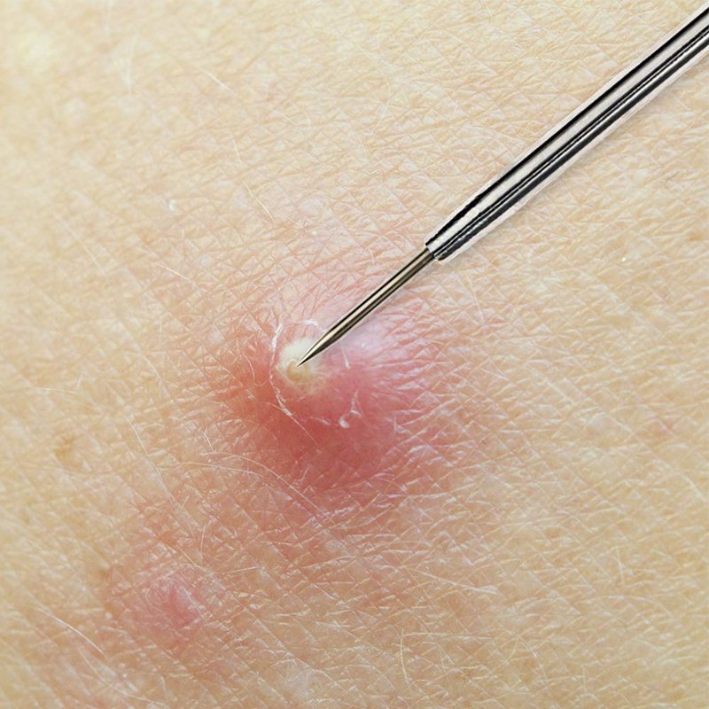 - Use the needle to gently puncture the top of the whitehead. Make sure not to poke too deeply into the pimple.