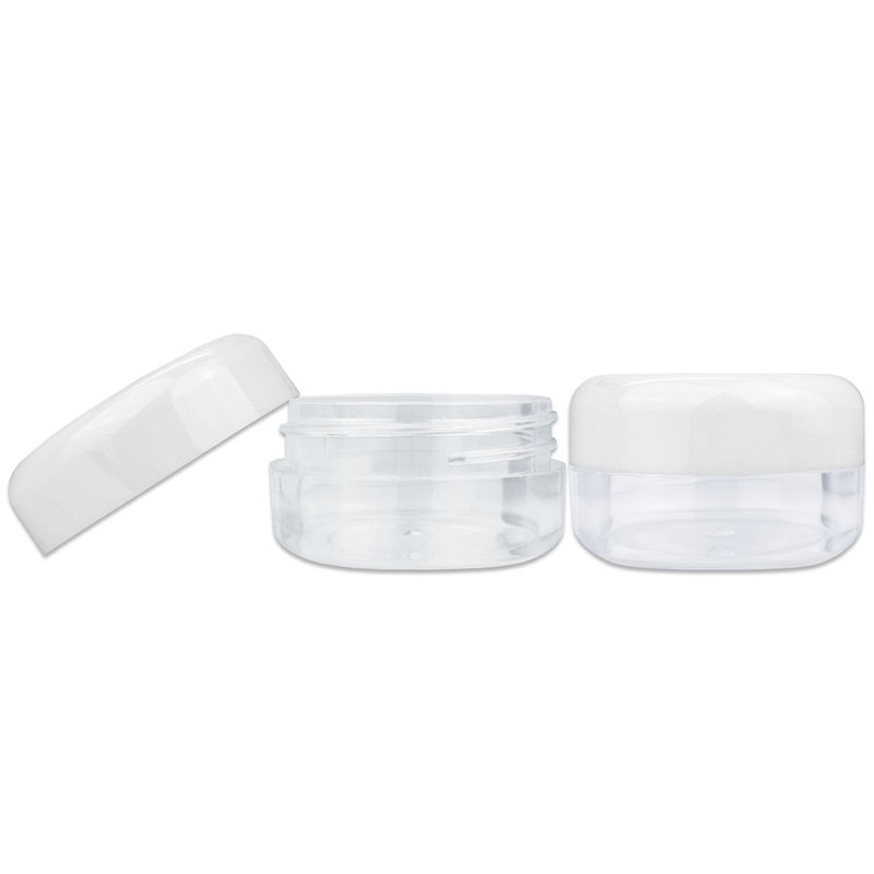 Beauticom offers a wide variety of jars. Every jar is lightweight and compact, and some jars are TSA-approved, which makes it easier to travel and holds about anything you need. Our standard round-top jars are the basic jars that we carry. They are made of toxic-free BPA-free acrylic with lids that are available in different sizes and colored lids in various quantities. It is not completely leak-proof, but it will still hold glitter, charms, and more. These jars are reusable after wash, and are perfect for professional or personal use! Beauticom holds two different types of jars for universal usage! It may be really easy to mistake the two colored-lid jars, however, if you look closely, the jars will either be rounded in the corners of their lids or a sharp edge. All jars include a bottom clear plastic base and a lid (ex: 6 jars = 6 bottom base & 6 lids). The jars do not include a foam gasket liner.