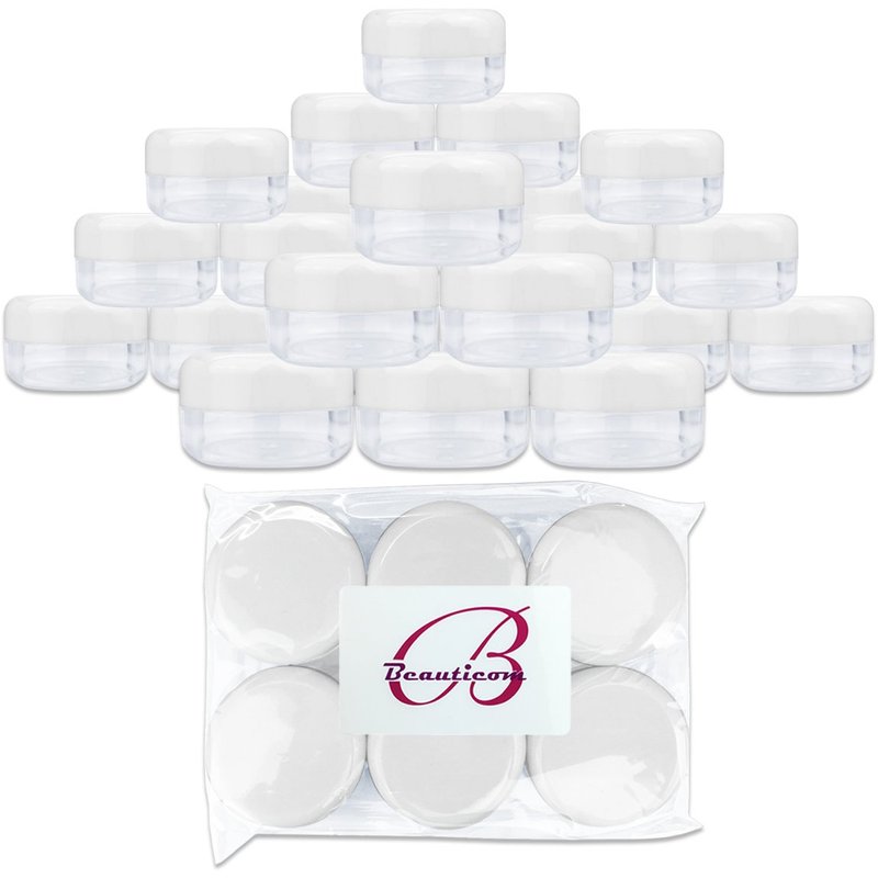 Beauticom 15 gram/15ml Empty Clear Small Round Travel Container Jars with Lids for Make Up Powders, Eyeshadow Pigments, Lotions, Creams, Lip Balm, Lip Gloss, Samples (48 Pieces, White Lid)