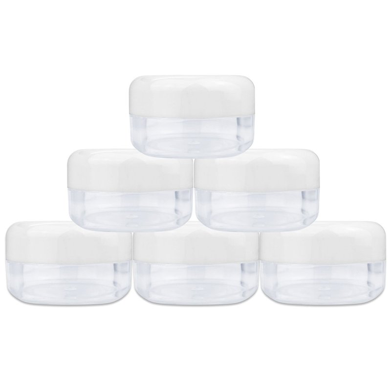 - [ROUND TOP] The standard round top jars are not completely leak-proof, but you will still be able to hold glitters, beads and thicker creams