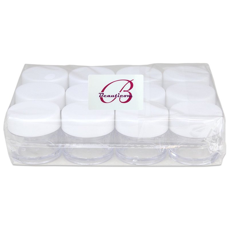 Beauticom High-Graded 7 Grams/7 ML (Quantity: 12 Packs) Thick Wall Crystal Clear Plastic Leak-Proof Jars Container with White Lids for Cosmetic, Lip Balm, Lip Gloss, Creams, Lotions, Liquids