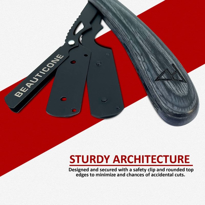 BEAUTICONE Straight Razor for Men, Professional Barber Razor with 100 Single Edge Blades, Wooden Handle
