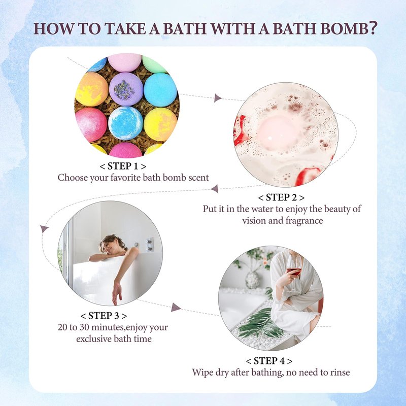 - FEEL THE DIFFERENCE: Our organic bath bombs quickly dissolved in water and fill the bathtub with colorful bubbles, the fragrance and soft bubble will refresh your body and mind. It is a balanced, lightweight moisturizer from the good quality ingredients to keep you hydrated but will not leave your skin sticky. Use daily for an amazing spa experience at home!