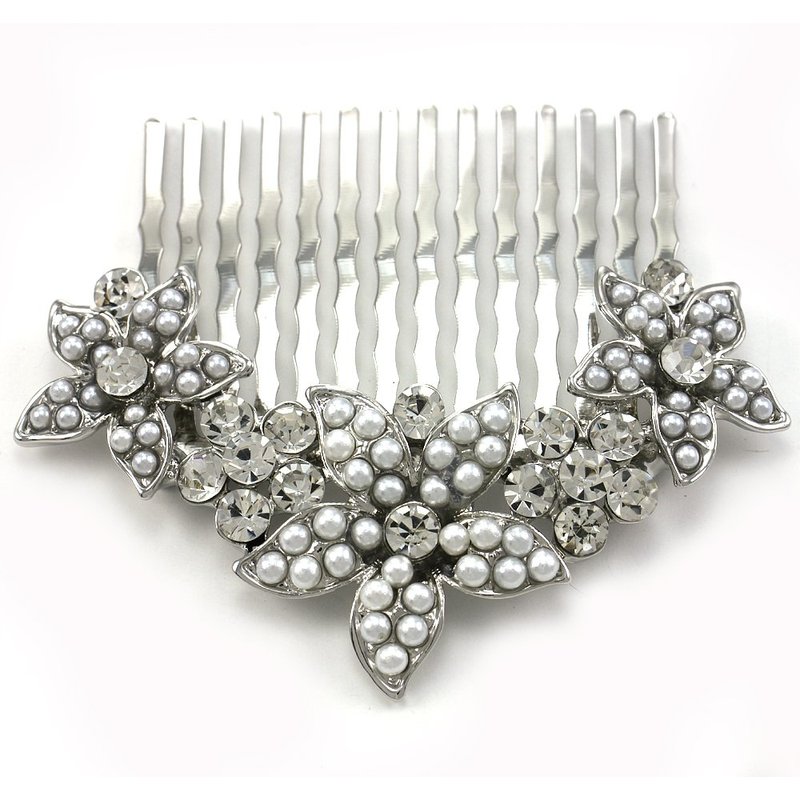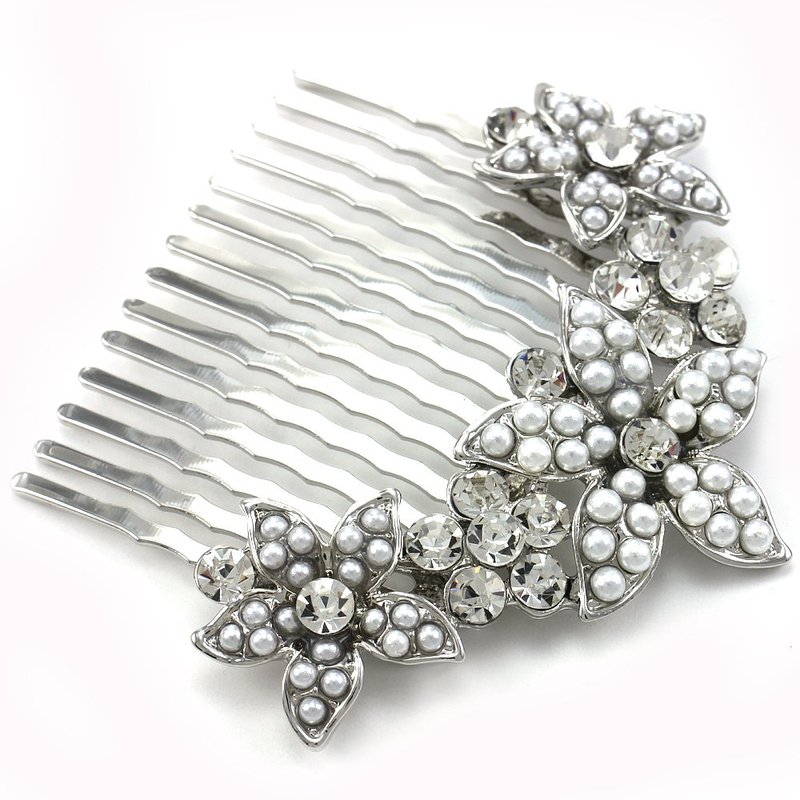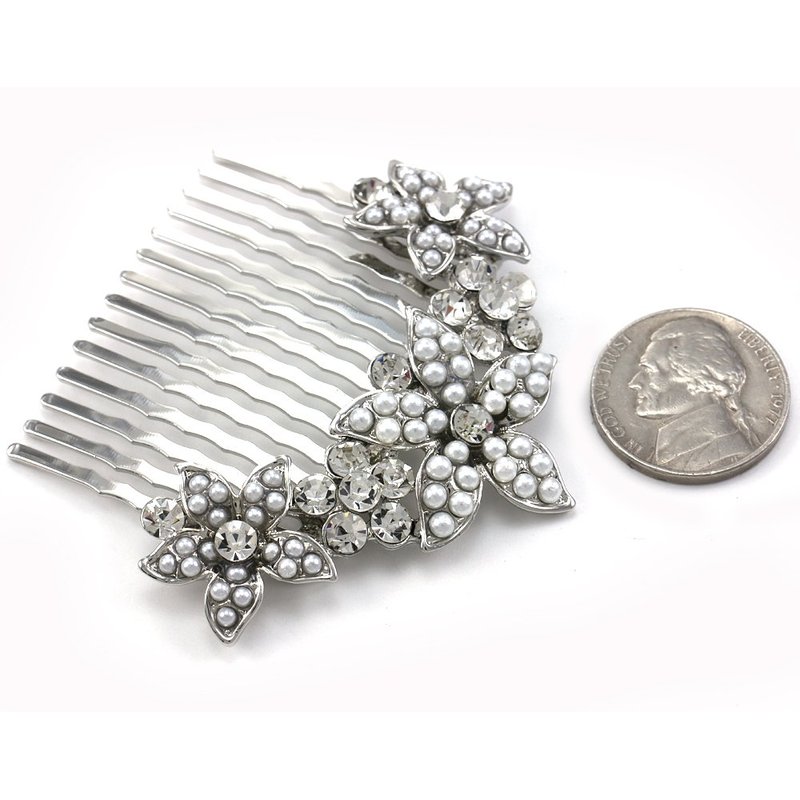 Beautiful Bridal Wedding Flower Floral Tiara Hair Comb Faux Pearl Bridesmaid Gift for Girlfriend Friend Women Mom Prom Beauty Pageant Clear Rhinestones Hair Accessory Costume Wedding Jewelry