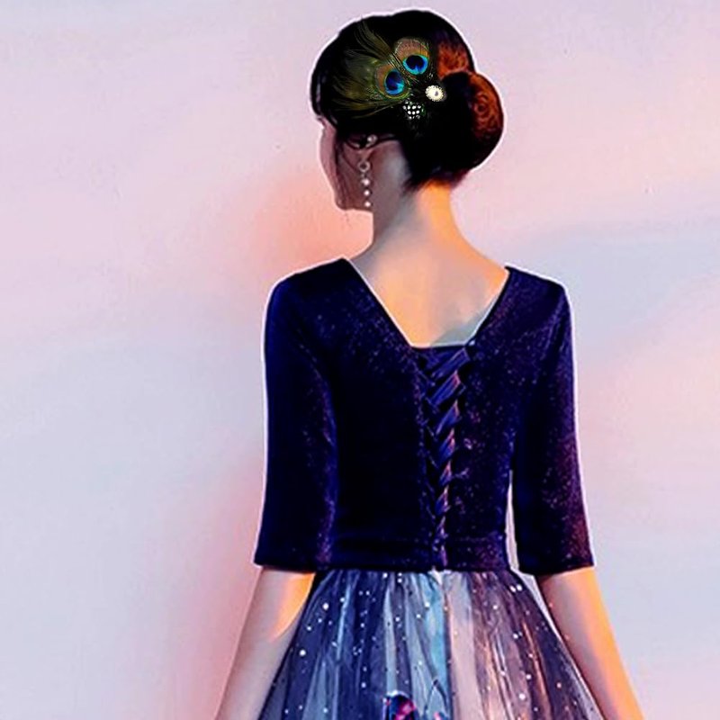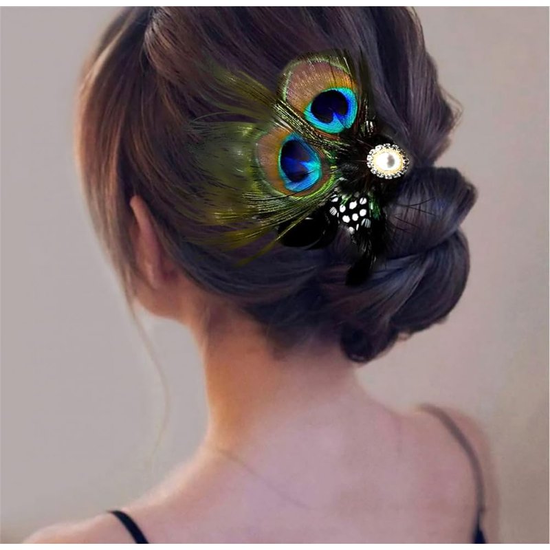 - Package includes 1 unit of Butterfly Peacock Feather Hair Clip Pins with Artificial Pearl Rhinestone.