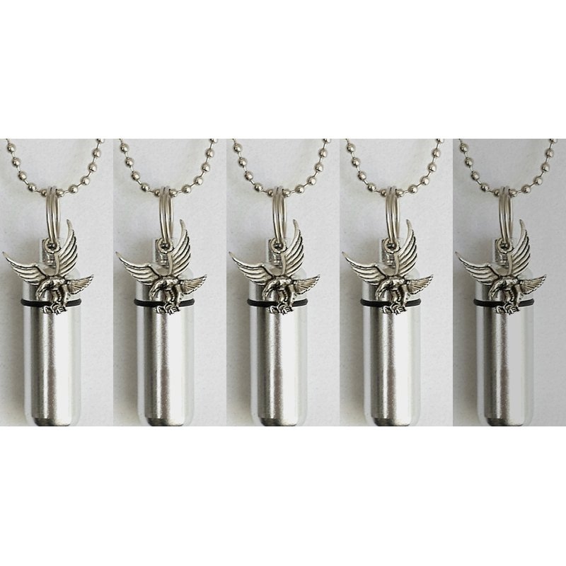 Beautiful Set of Five Silver Eagle Cremation URN Keepsakes with - Includes 5 Velvet Pouches, 5 Ball-Chain Necklaces & Fill Kit - Made in The USA