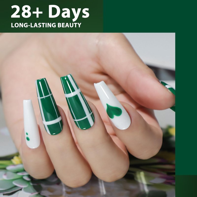 - No More Peel-Offs & Lasts For 28+Day: Our green nail gel polish is uniquely formulated to provide easy coverage, high pigmentation, and a smooth surface texture that won't crack or chip, cover with only one coats. So you don't have to worry about your nails peeling off in the shower or while doing housework. Maintains perfect shine for more than 28 days.