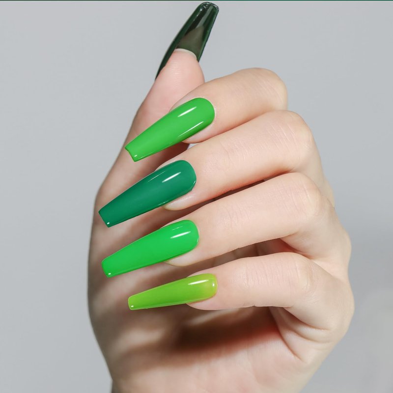 - Green Series Gel Nail Polish Set: 6 Pcs different green color, including dark green, forest green emerald green, grass green, capacity is 10ml, which more durable. Theres every must have green color can make your manicure more attractive in summer!