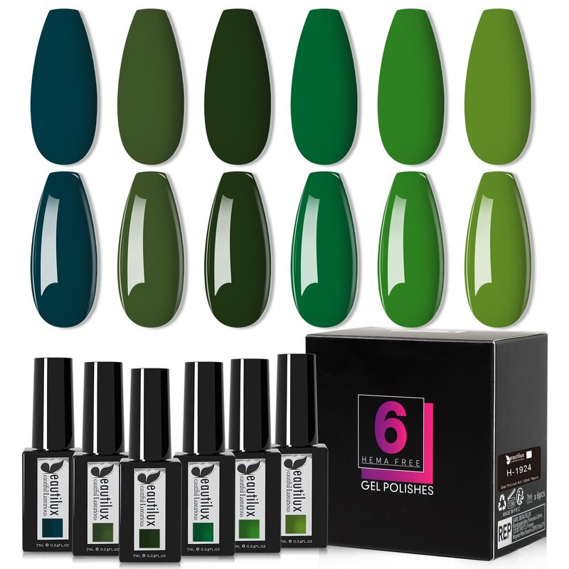 beautilux Hema-Free Green Gel Nail Polish Set- 6 Pcs Emerald Green Dark Green Gel Polish Color Soak Off LED Gel Nail Manicure for Women Girls