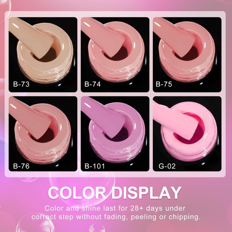 - Pink Gel Nail Polish Set: 6 Pcs different pink color, including baby pink light pink, capacity is 10ml, which more durable. Theres every must have pink color can make your manicure more attractive in summer!