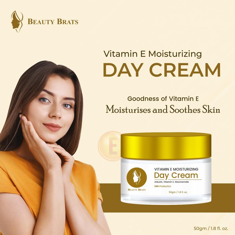 - Hydrating Elixir: Beauty Brats Vitamin E Moisturizing Day Cream is a potent hydrating formula that deeply nourishes the skin, providing essential moisture for a soft and supple complexion.