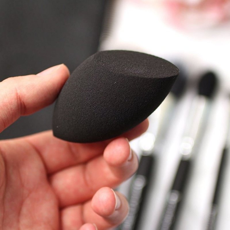 - Green Oval: The pointed ends make it super easy to apply foundation into the side of your nose and concealer around the delicate eye area. Just spray a few squirts of water onto the sponge and it works like a charm. Gives a better finish than using a brush.