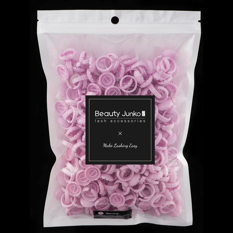 Beauty Junko Pink Eyelash Glue Rings [200PCS], Plastic, Disposable, Fast Fan Design, Lash Extensions Supplies