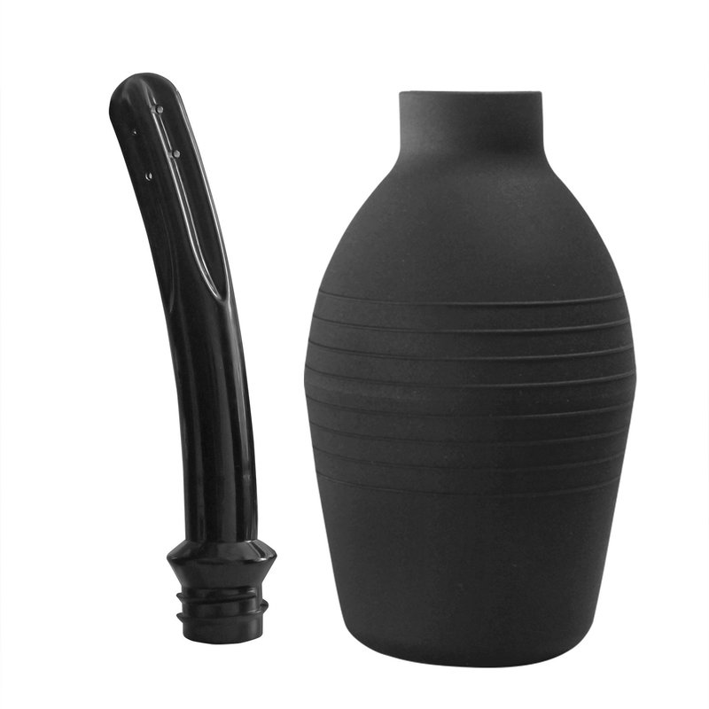 - ENEMA DOUCHE is neutral black with an 10 oz capacity. nozzles lengths approx 5.11 inch fit inside the enema bag for easy storage.