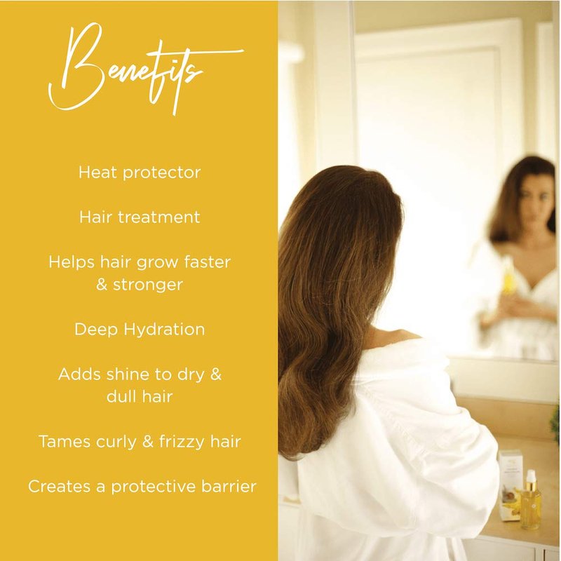 - ARGAN OIL: Nourishes, hydrates and softens hair, increases hair elasticity and promotes the regeneration of hair fibers, and increases shine.