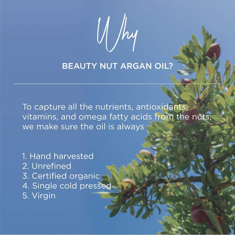 Beauty Nut Hair Serum 100% Organic Argan Oil to condition hair, repair damaged hair, tame curly frizzy hair, hydrate, moisturize and restore shine for complete haircare