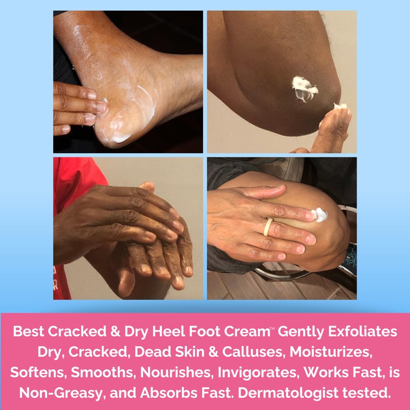- SCIENCE-BASED AND NATURE POWERED SKIN CARE FOR SKIN-OF-COLOR, WOMEN & MEN, ADULTS & TEENAGERS: Skin Repair - This heel foot cream for dry cracked heels repair relieves damaged, cut, cracked, itchy skin. Regularly using this cracked heel dry hand foot elbow knee softening treatment heals & reduces callus buildup, and helps remove damaged, thickened toenails. Great to use as foot, heel, toe, hand, knee, finger callus remover, and rough knee elbow cream.