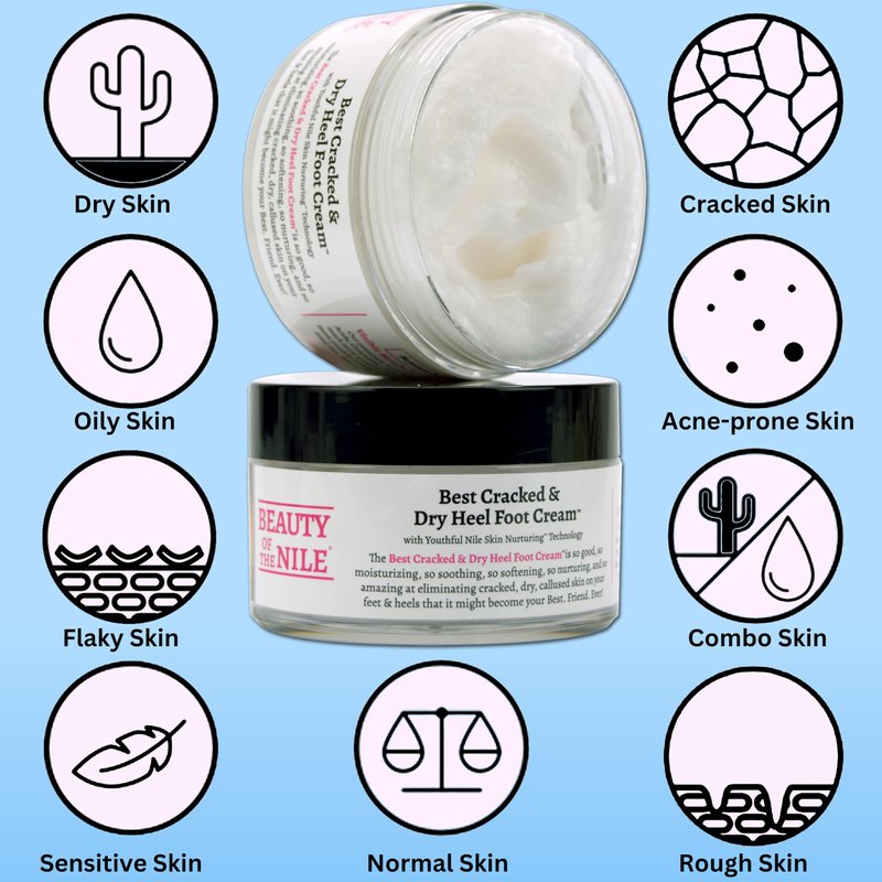 - BEAUTY OF THE NILE MISSION: Reject colorism, amplify that all skin tones are beautiful, and provide effective skin care products to people-of-color so that all know to Love Your Brown Skin. We are 100% dedicated to the needs of skin-of-color because those needs have been ignored since forever! Join us. GOOD TO KNOW: foot cream for dry feet, cracked hands repair, cracked heel repair, foot cream for calluses and dry feet, dry feet treatment, heel cream for dry cracked feet, cracked feet treatment