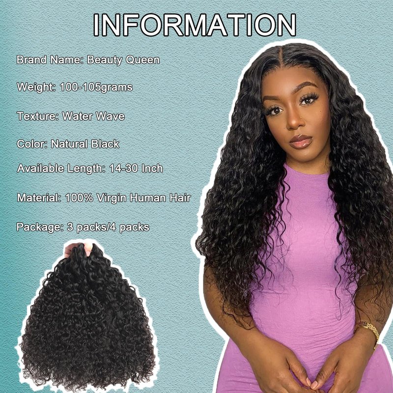 - 【Human Hair Water Wave Bundles Life Time】Due to its high-quality real hair composition, human hair wet and wavy is exceptionally durable, maintaining its aesthetic appeal for extended periods. This ensures you can confidently wear these hairstyles without worrying about premature damage or shedding.Can Be Used At Least 18-24 Months With Proper Care