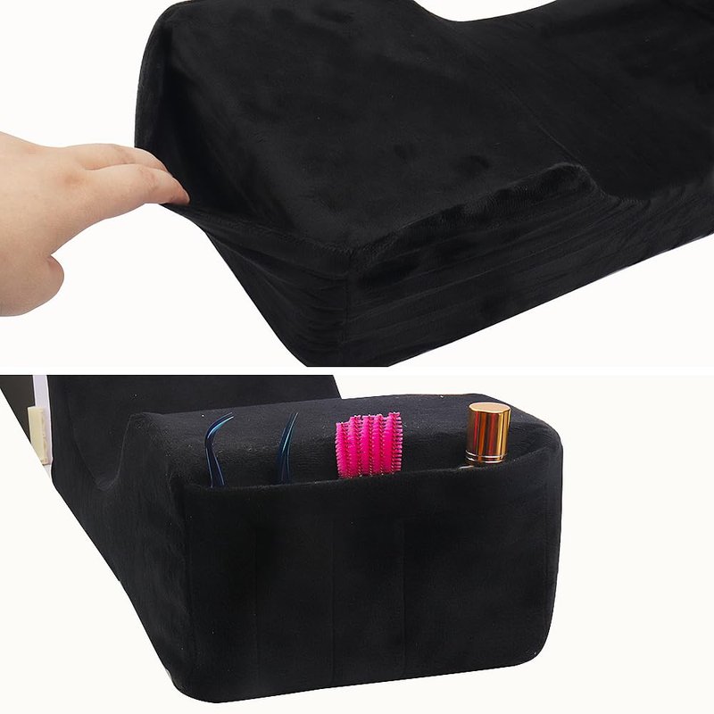 Beauty Salon Eyelash Extension Neck Pillow - Comfortable Velvet Beauty Memory Foam Pillow,Eyelash Pillow Grafted Eyelash Curve Pillow with Makeup Pocket to Protect Neck(Black)