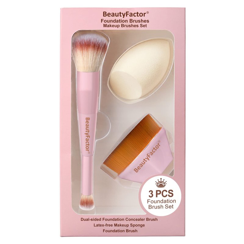 BEAUTYFACTOR Foundation Brush Set,Kabuki Makeup Brushes,Blush,Concealer,Blending Brushes & Sponge for Foundation, Cream & Powder Makeup(Pink)