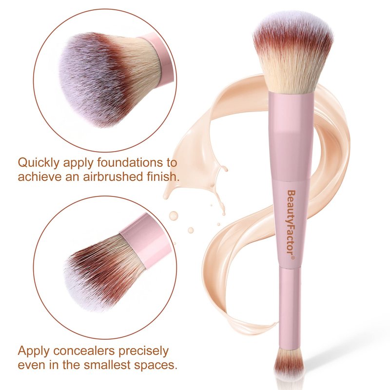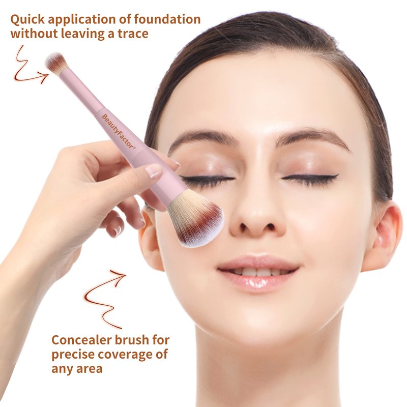 - 【Dual-ended Foundation Concealer Brush】Our Makeup brush designed with dual-ended, One end concealer brush blends your favorite concealer, and the other end foundation brush buffs and blends your favorite liquid, cream, and powder foundations.Choosing the large,fluffy end foundation brush applies your complexion products,the micro end easily blends away the look of imperfections in harder-to-reach areas for your most airbrushed results every time, creating a flawless, airbrushed finish!