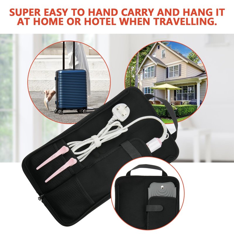 - Perfect to holds flat iron, curling iron, or straighteners, and styling irons when travel or at home; super easy to hand carry and hang it at home or hotel when travelling.