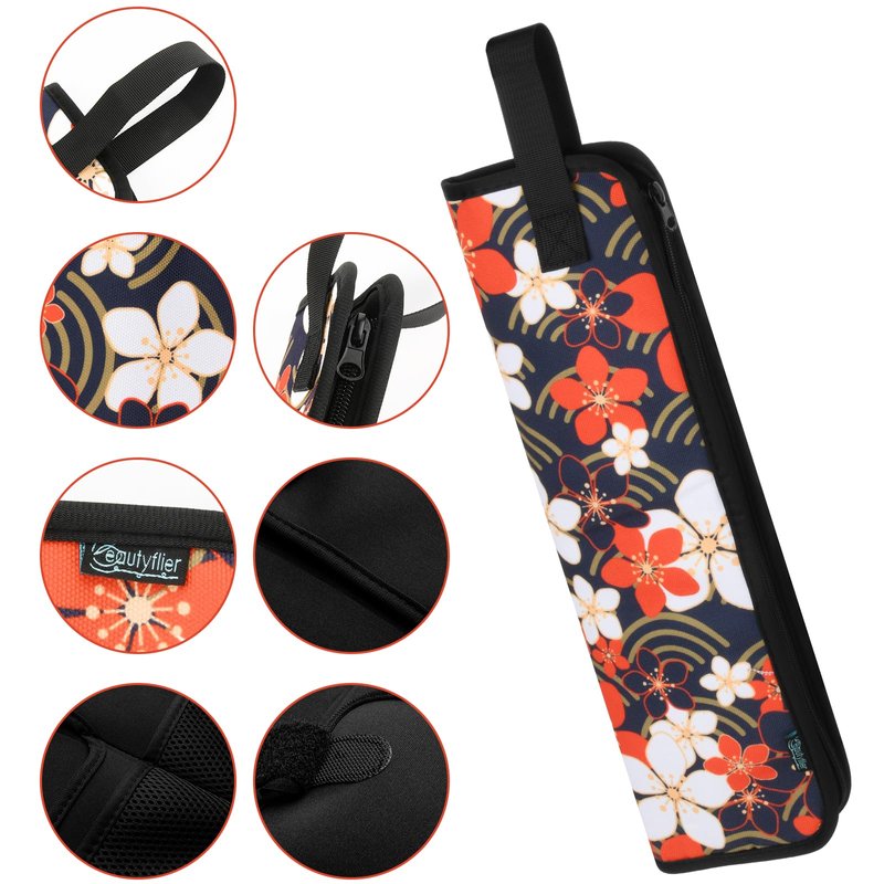 Beautyflier Set of 2 Curling Iron Travel Case, Canvas Heat-Resistant Flat Iron Holder Case, Straightener Travel Case and Silicone Mat for Hair Tools for Travel, Gym or Daily Use (16.5IN, Red Blossom)