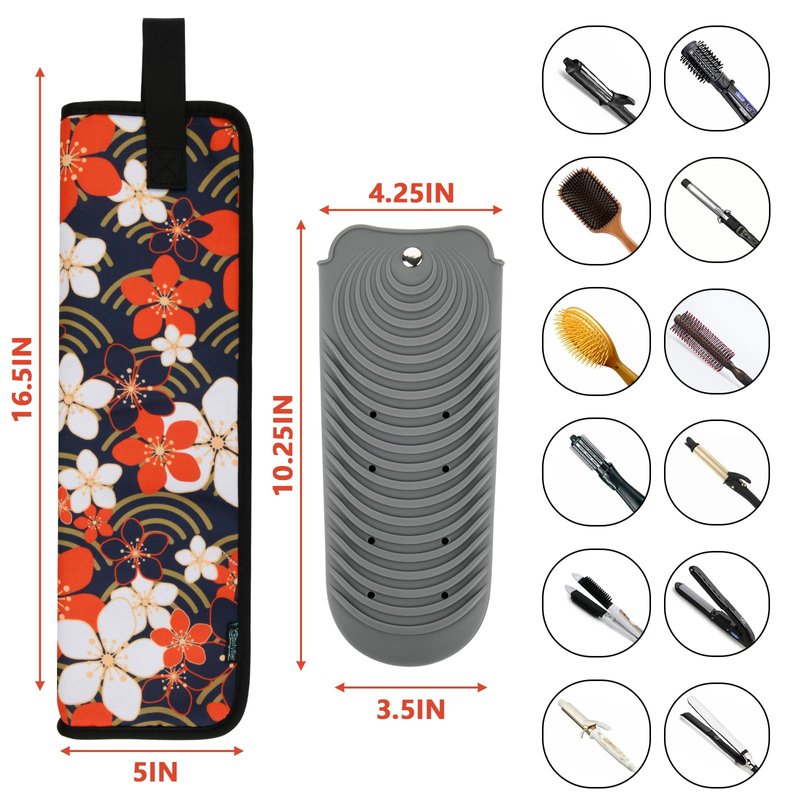 - Package: 1pc canvas hair flat iron organizer bag + 1pc heat resistant silicone cover/mat. It is made of durable canvas fabric lined with neoprene material, printed flower pattern; portable, washable and heat resistant.