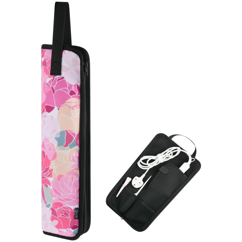 Beautyflier Universal Curling Iron Travel Case, Canvas Heat-Resistant Curling & Flat Iron Holder Travel Case, Hot Curling Iron Holder for Hair Tools Travel Bag or Daily Use (Pink Flower)