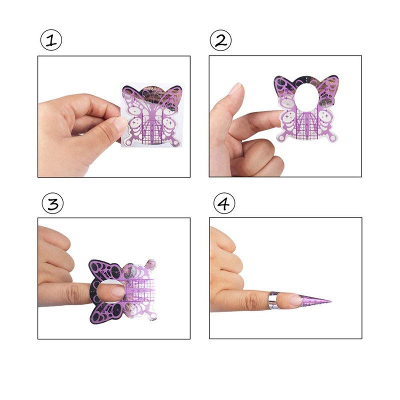 - 500Pcs Purple Butterfly Shape Nail Form Pro Nail Art Guide Form Acrylic Tips UV Gel Extension Stickers Guide Stencil Manicure Tools
