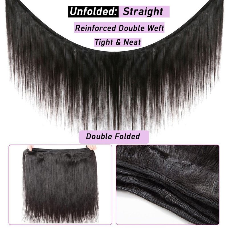 - Straight Hair Bundles Quality: 100% Real Human Hair, Double Strong Weft, One Direction Cuticle with Thick Healthy Ends, No Shedding, No Tangles, No Lice; Full and Thick, Soft And Smooth Human Hair Bundles Straight.