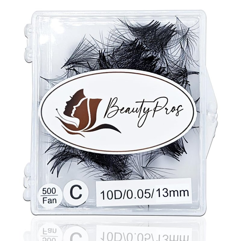BeautyPros Professional Lash Extension Kit – Faux Mink Bundle 500 Lash Fans (8-17mm)- Premade Loose Fans base (0.05mm & 0.07mm) -Volume Lash Extensions Multiple Selection -Black (3D D Curl 8mm)