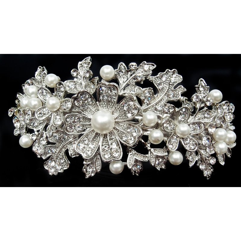 Beautyxyz Bridal Headpiece with Imitation Pearl Rhinestone hair barrette hair clip