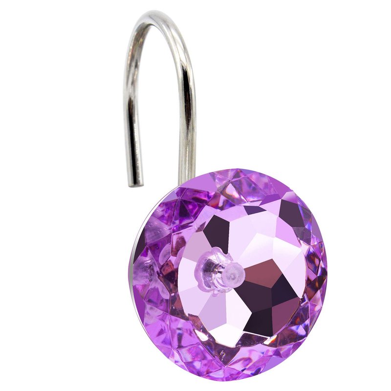 BEAVO Acrylic Fashion Decorative Home Rolling Purple Shower Curtain Hooks Rhinestones Bathroom Bath Baby Room Bedroom Living Room Decor Set of 12 Rings (Purple)