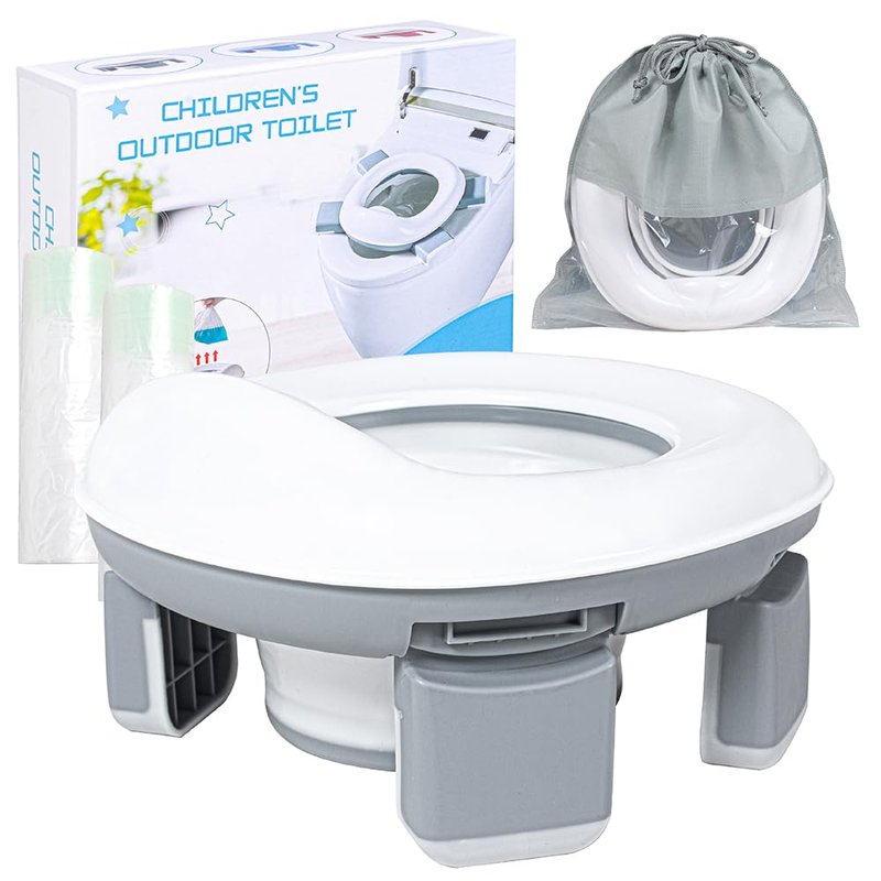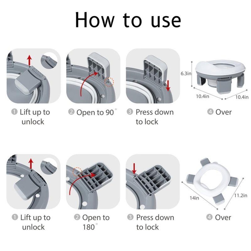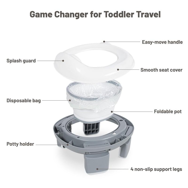 - 3 in1 Design: This travel toilet works as either a stand-alone potty or to put on top of a toilet as a potty ring. When it's inconvenient to clean the potty you can use our enclosed disposable liners and throw it into the trash can after each use. It is a great helper for children's potty training.