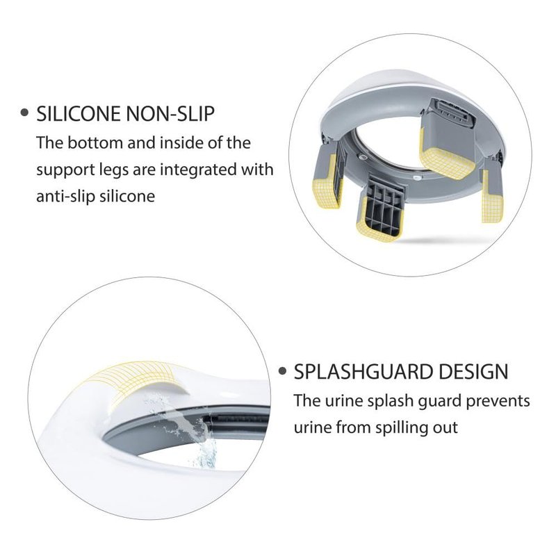 - Stability and Non-Slip: Compared to the ordinary 3 legged support, this training potty is designed with a four-legged support structure, with a stable center of gravity that is not easy to fall over. The bottom and inside of the support legs integrated with non-slip silicone to avoid sliding.
