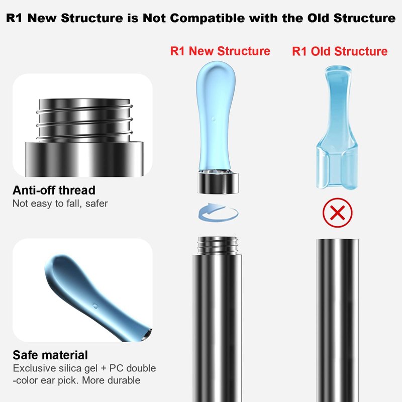 The new R1 is not compatible with the old R1 structure, Please carefully check the model of the otoscope in your hands before purchasing