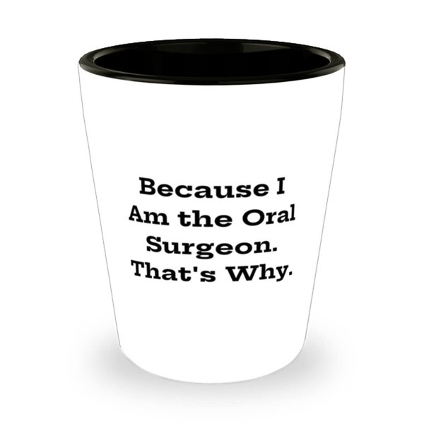 Because I Am the Oral Surgeon. That's Why. Shot Glass, Oral surgeon Ceramic Cup, Unique Gifts For Oral surgeon, Dental health, Toothbrush, Toothpaste, Floss, Mouthwash