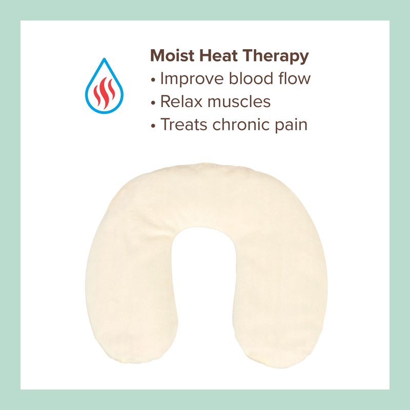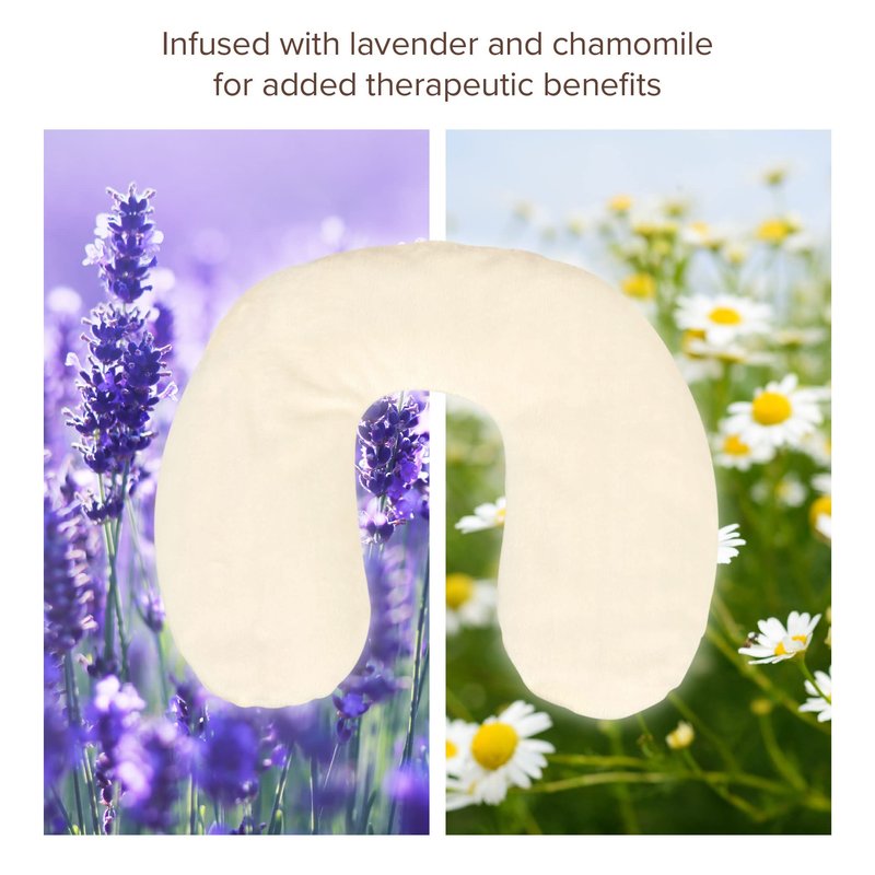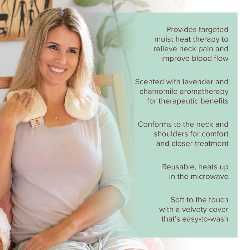- ✔ NECK HEATING PAD. An aromatherapy (Lavender and Chamomile) moist heating pad for your neck and shoulders that is both light and portable. Great for relaxing on the couch or taking on an airplane. Neck wrap is microwavable when used as a heated pillow.
