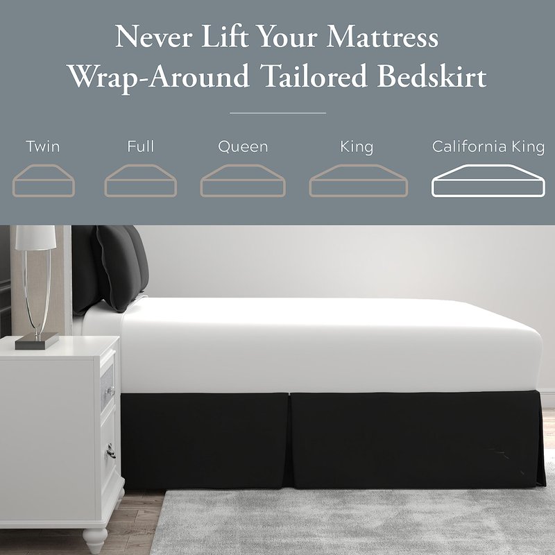 Bed Maker’s Never Lift Your Mattress Wrap Around Bed Skirt, Classic Style, Low Maintenance Wrinkle Resistant Fabric, Traditional 14 Inch Drop Length, California King, Black